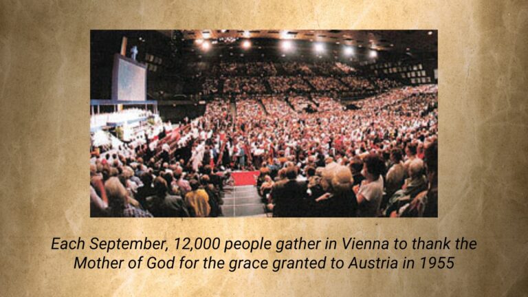 In May 1955, the Crusade of Reparation of the Holy Rosary, through the intercession of its Patron, Our Lady of Fatima, was graced with a miracle: the withdrawal of Soviet troops from Austrian soil.
